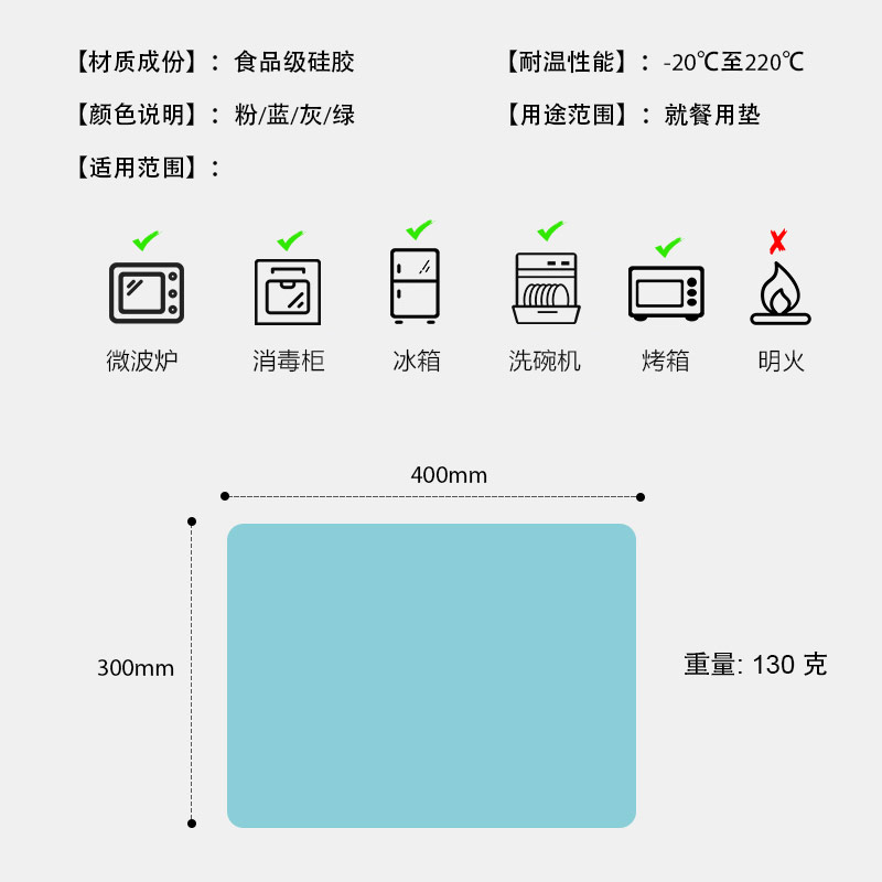 您的位置:首頁(yè) > 產(chǎn)品中心 > 硅膠廚具用品 > 餐墊 > 硅膠餐墊 40*30食品級(jí)硅膠兒童餐墊隔熱學(xué)生桌墊
