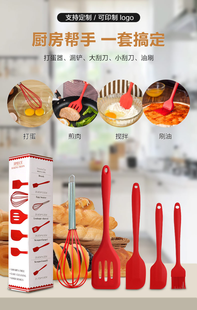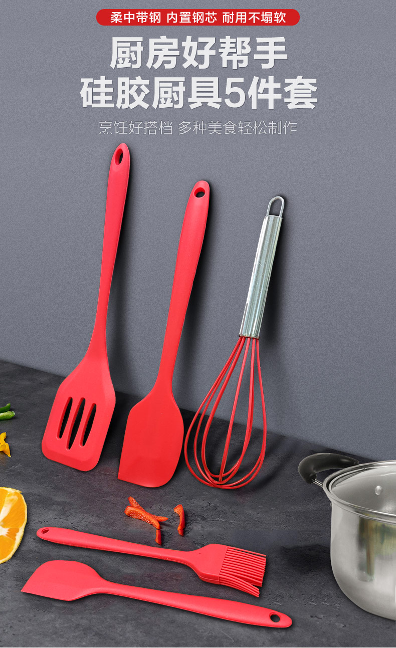 硅膠廚具5件套 廠家直銷(xiāo) 支持定制 可印LOGO
