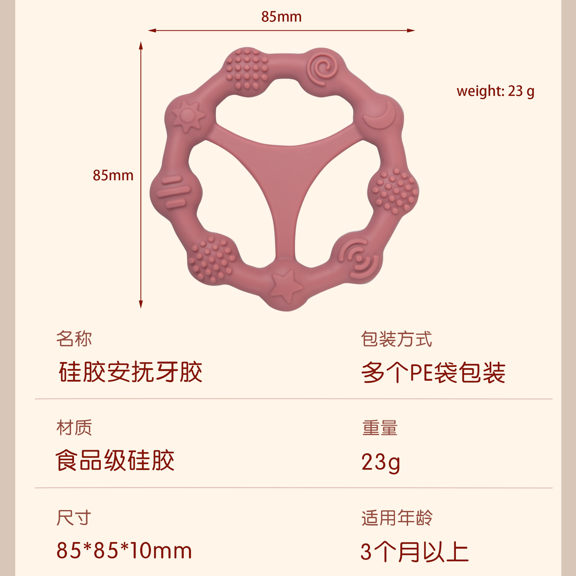 您的位置:首頁(yè) > 產(chǎn)品中心 > 硅膠嬰童用品 > 牙膠 > 嬰兒硅膠牙膠防吃手食品級(jí)嬰兒玩具配件母嬰牙膠