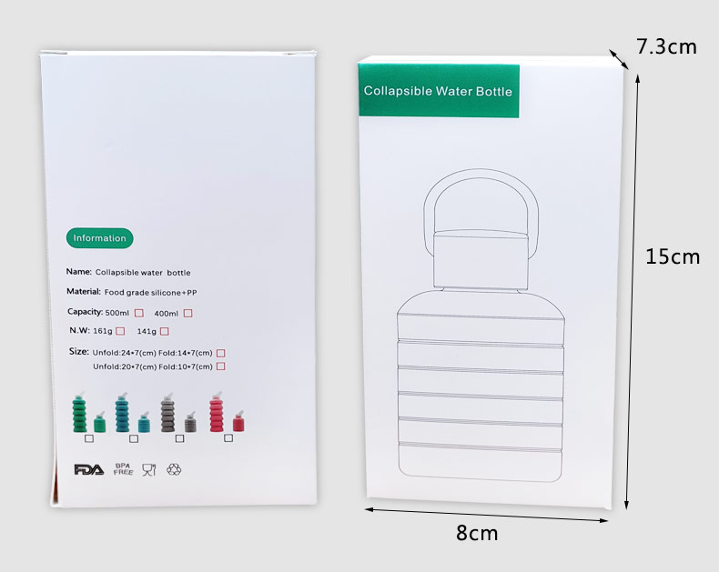 便攜式硅膠折疊水瓶采用食品級硅膠材質(zhì),符合食品級標準,符合相關質(zhì)檢標準,這款運動折疊水瓶是本公司2021年最新研發(fā)生產(chǎn)的硅膠制品,顏色目前只生產(chǎn)了4種,分別為灰色,綠色,藍色,粉紅色,瓶蓋為白透明色,也可以根據(jù)要求來定制各種材質(zhì)或者是不同形狀的瓶蓋顏色或者是樣式??裳b熱水,方便旅行攜帶,具有耐摔,耐高溫,柔軟等特點。